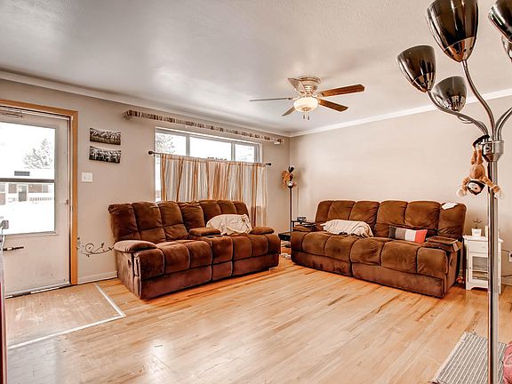 Don't miss this 5 bedroom 2 bathroom ranch. Located blocks from Arvada West High School, and Vanderhoof Elementary. This property offers ample living space with a quiet backyard and covered patio, speakers and lighting included, backyard is also equipped with a chicken coup, and raised bed garden. The inside features hardwood floors with a full bath on the main floor, as well as 3 bedrooms with beautifully updated lighting. Kitchen dining and living room are ready for your personal touches and updates. The downstairs features 2 more non-conforming bedrooms and a fully remodeled full bathroom. Basement also features an incredible living/entertaining space with gas fireplace and built in bookshelves, on stained concrete floors. 2 car attached garage with utility door and work bench included. Close to Stenger Soccer fields and Skyline Park, the light rail, bike paths, trails, and Olde Town Arvada. Easy commute to Denver or Boulder. Quick access to I-70 to head up to the mountains. No HOA. RV parking. *Buyer to verify all information.
