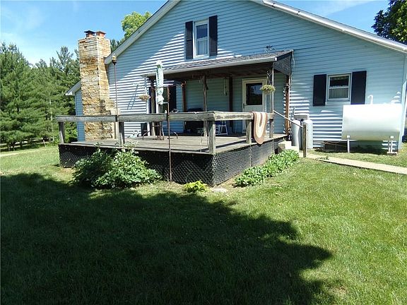 This is an older home that has lots of new things done. Appears to be in good condition. Will only show 2 bedrooms but could be 2 more with little work because the upper level could easily be 2 children bedrooms. records show upper level as an attic space of 634 sq feet but that area is finished. Lots of good space and storage space . The living room was added and the same sq foot was added in the basement. Both the living room and the basement family room have fireplaces. Rest of the basement is mostly storage but is a great space. Two old barns on the property. Believe both can be saved with some work. Shows 8 acres but might be more. . There is a pond at the end of the property and is shared with the neighbor. Very nice