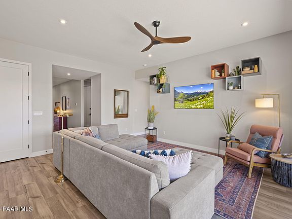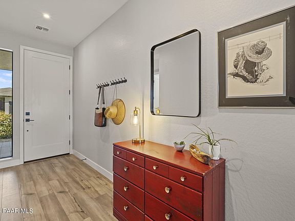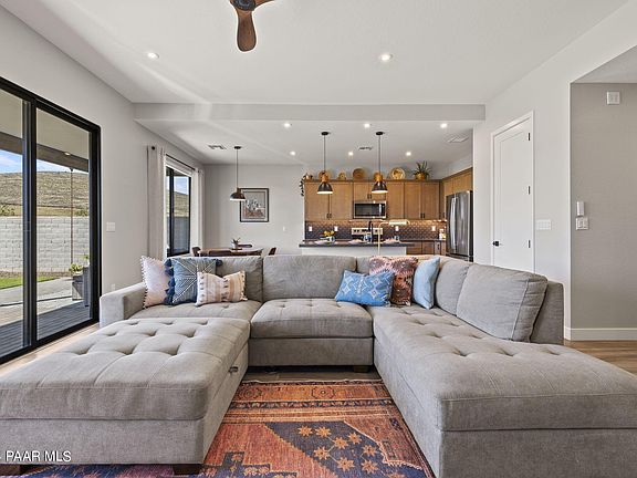 This beautifully designed, Fully Furnished single-story home offers a split floor plan with modern luxury. Located in the highly desirable Jasper subdivision of Prescott Valley. The home features 3 spacious bedrooms, 3 bathrooms, and an open kitchen with upgraded cabinets, quartz countertops, a large island with sink, raised ceilings, and abundant natural light from large windows throughout. The kitchen also includes a walk-in pantry. The primary suite boasts a sitting area, dual vanities, a walk-in shower, a private toilet, and a spacious closet.The front and back yards are landscaped for low maintenance. Step outside to your covered patio and enjoy the expansive backyard, complete with a seating area, BBQ, and fireplace--ideal for entertaining or relaxing.