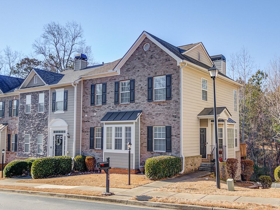 Prime location of this spacious townhome in sought after Sugar Hill. Walk to shops, restaurants and grocery store! Just minutes to downtown Sugar Hill. Small swim/tennis community with low HOA fee that covers lawn maintenance and water bill. End unit with open, 2-story living room/kitchen/breakfast area and full bedroom/bath/laundry on main level. Upper level has large primary suite and spacious loft area that can be used as an office, playroom, or additional sleeping area. 2 car garage plus additional finished space in lower level that can be used as a bedroom or family room. Private deck off kitchen to enjoy your cup of morning coffee. Townhome backs up to Sugar Hill Golf Club and is right across the street from the pool. Highly rated schools, convenient to I-85, GA 400 and south end of Lake Lanier.
