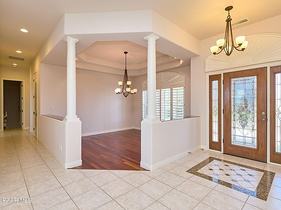 Amazing panoramic views from this stunning home situated on top of the hill in Pinon Oaks.Spacious and open with attention to detail. Main level entry and living area, split open floor plan with 3 bedrooms. 2 additional bedrooms & bath in lower level, plus large family, game or hobby rooms. Main level has a wonderful enclosed wall of windows deck to enjoy those unbelievable views and additional outdoor covered deck. Level entry opens into living room with gas fireplace. Formal dining room with Brazilian cherrywood floors. Wood shutters embrace the fine quality throughout this home. Kitchen is complete with abundance of cabinets and plus kitchen island and prep sink. 5 burner gas cooktop stove and wall oven and microwave. Home recently painted completely inside. Oversized garage.