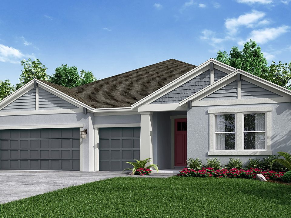 The Saint Croix has it all from the stunning curb appeal to designer interior. With 4 bedrooms and 4.5 baths, each bedroom has a private bathroom. All 2,921 square feet were thoughtfully designed. Enter the home through the inviting foyer which is connected to two of the secondary bedrooms. Through the foyer you will enter the open-concept kitchen with center island that overlooks the gathering room which leads to the large covered lanai. The spacious primary bedroom includes a garden tub, large walk-in shower, dual vanities, water closet & a walk-in closet which can be connected to the laundry room if desired. Options on this home include converting the flex room into a study, expanding the space in the laundry, and adding an outdoor kitchen.