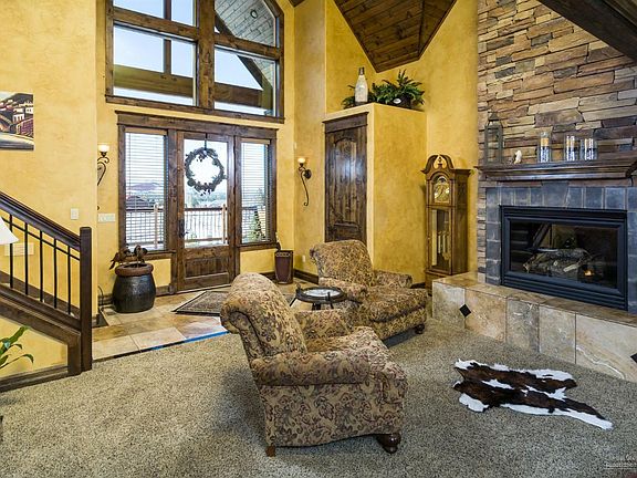 Spectacular Cascade View Hm situated on over 2 acre parcel w/ RV Garage/Shop. Quality Craftsmanship thruout hm w/ Myrtle Wood Floors, Alder Cabinetry, Granite, Stone & 3 fireplaces. Gourmet Kit has Stainless Steel Appliances, Walk-in Pantry & Huge Center Island w/ cabinet space galore. Master Suite & Guest Suite on Main Level. Upstairs has Huge Bonus Rm w/ FP & Guest Suite. Bottom level has Theatre Rm w/ 6 Recliners, Wet Bar & 86' Big Screen & another separate Bonus Rm w/ Guest Suite. Move-in Ready/Must See
