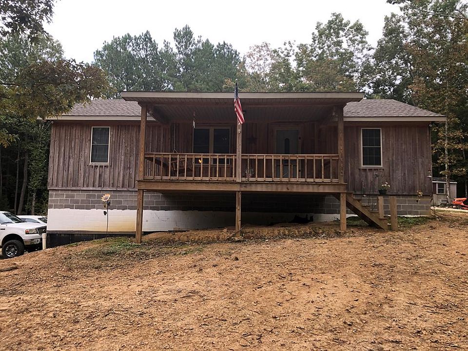 Beautiful, rustic, wood sided home on over 9 acres! Secluded with no close neighbors yet just over a mile from town! City water and natural gas. Only 1 mile to the boat ramp! Year-round creek flowing through the property. An extremely rare find!!! Home is just 3 years old and features 3 bed 2 bath upstairs. Full basement with a bathroom with plenty of space to add more rooms. On demand gas water heater. Call before it's gone!