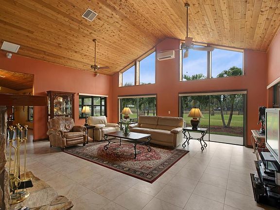 This pristine home and 5 acre lot is the perfect place to create your ideal equestrian property. The home has been well maintained and boasts a center island kitchen, living room with cathedral ceiling and stunning stone fireplace & chimney. There is a bonus room that can be a den or game room. Every bedroom has french doors w/ impact glass and open out to the covered and screened lanai. The lot is fully usable and impeccably maintained, irrigated with proper drainage. The perimeter is fully fenced with 4-rail wood fencing and gated driveway entry. There is a 45' x 20' metal storage building with electric and water- perfect for storage or conversion to stables. The lot is very open and the house properly positioned, making it the perfect canvas to add a stable, riding arena & paddocks.Other features include: Granite counter tops, Kitchen Aid stainless-steel appliances, reverse osmosis water filter in the kitchen, hurricane film on the windows, impact resistant french doors. Two car garage, newer well, aqua-soft peroxide water treatment system, generator & hardwired hookup, dual speed 2 zone AC systems. 9 zone irrigation system off of the canal, 4 rail wood fencing with wire mesh. Solar front gated entry. No wetlands on the parcel.