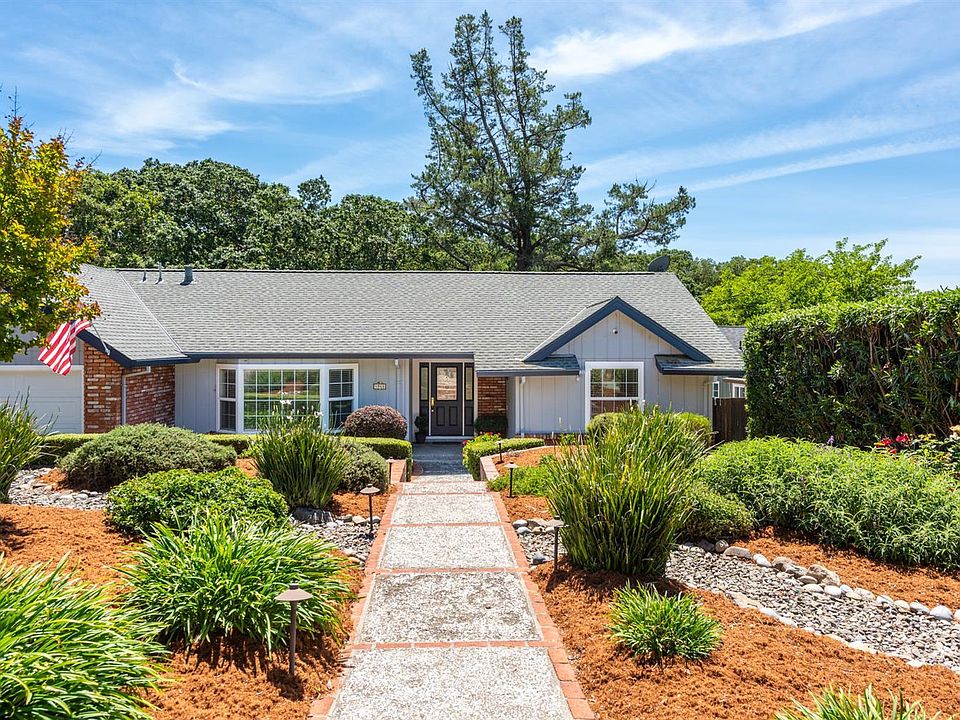 On a quiet interior street in beautiful Rincon Valley, you'll find this rare and lovingly maintained, single-level, in-town home with a beautiful creekside setting. The home sits back from the street and has decorative brick accents. Upon entering, you'll find a freshly painted interior, inviting entry with wall sconces, living room with built-in cabinetry and a vaulted ceiling that extends into the kitchen & dining. Well appointed kitchen with gas cooktop, granite counters & skylight opens to dining area with circular fireplace, French door to rear deck and yard along with another set of French doors which open to adjacent bonus room w/vaulted ceiling, built-in commercial style barbecue and access to rear deck. Primary bedroom is privately located with vaulted ceiling and en suite bath w/skylight and walk-in closet along with access to rear yard deck. Two additional guest bedrooms w/guest bath at hall. Private rear yard is sure to impress with a stunning heritage oak tree, large patio for entertaining, multi-level decking, and a custom built-in pond w/waterfall and stream. Attached 2 car garage with abundant storage. The home is close to shopping, excellent schools, nearby parks with lots of hiking & biking trails and more.
