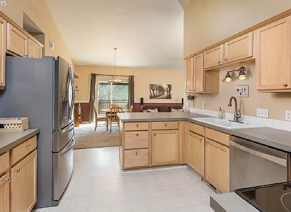 The open floor plan and vaulted ceilings make this little gem appear much larger than it is! The kitchen has updated stainless appliances, and includes a pantry and eating bar. The front-loader washer/dryer are included! The double garage is wired for a car charging station. Outside you'll find a level fenced back yard and a covered deck, great for those summer BBQs! One-level living makes it a very comfortable, easy-care home. No HOA.