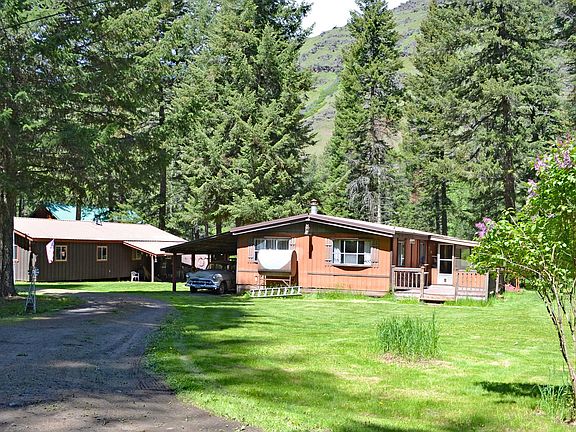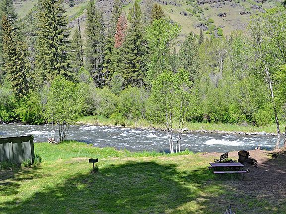 Enjoy the Imnaha River rolling by from this 3 bed/2 bath MFG home. Two lots total 1.44 acres with aprox 250'of river frontage in a lovely treed setting. You will be set up with the nice 24x48' shop with wood & propane heat to keep you warm for winter projects. Also includes a detached 18x21' metal garage and large 'root cellar' for food storage and 2 additional garden sheds. One of the nicest Imnaha River Woods lot packages. National forest nearby.