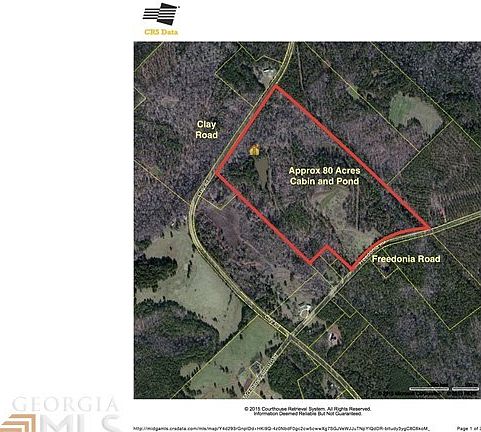 80 Acres with Pond, Cabin, Fenced Pasture and Timber! Two paved access roads, 1300 ft of frontage to Clay Road, 1100 ft of frontage to Freedonia Road. Located south of Monticello off of Hwy 83 and Hwy 16. Easy access to interstate. 30 minutes to Macon, 1.25 hrs to downtown Atlanta. Located in the Deer Capital. Great hunting for deer, turkey etc. Well built cabin with stone fireplace, 1 bedroom, 1 bath, large open floorpan overlooking 1.5 acre pond. Acreage is approximate. Property is part of larger parcel not included in sale.