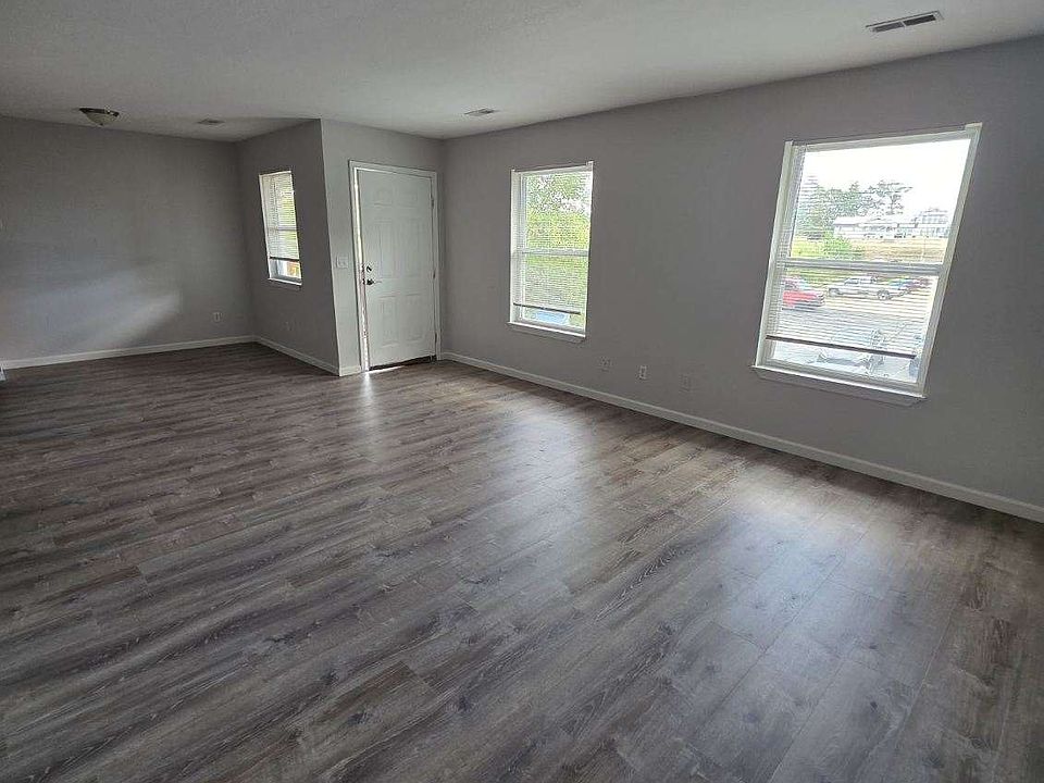This is a 2 bedroom 1 bath apartment remodeled with all new paint and vinyl plank flooring. This complex is quiet with great neighbors. Has washer/dryer hook up and a nice deck on the back. It's $1100.00 a month and that covers water, sewer, and trash. The yard is maintained as well as the parking lot in the winter.