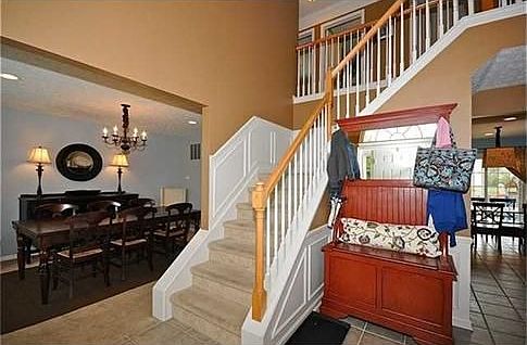 Beautiful four bedroom two and half bath home with soaring two-story entry and wrap around staircase. Kitchen with center island, breakfast area and stainless steel appliances is opent to the family room. Large backyard has privacy fence and deck.