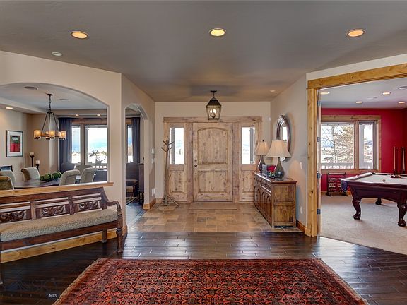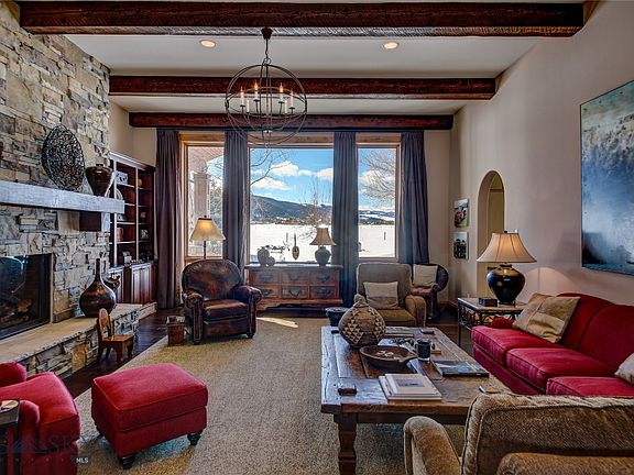 Private, refined & entertaining, only 5 miles from Main Street on 7.6 acres. High-end finishes with abundance of storage and 360-degree views. Stacked stone fireplace in living room w/ a wall of windows overlooking huge back deck. Lone Mountain View’s greet you as you walk in the front door. Formal dining/office face the Bridger mountains. Main level Master suite w/ fireplace, sitting room, dual walk-in closets, private and separate from other bedrooms. Big master bath w/ jetted tub, walk in shower and views. Chefs kitchen w/ 48” 5 Star range , dbl ovens, huge entertaining granite island seats 6 & opens to great room w/ 3rd fireplace. 3 generous bedrooms and 2 1/2 baths, encompass 1st floor. Private guest suite encompasses the 2nd floor, with built-in mini fridge. Daylight basement features movie room, 2 bedrooms, bath w/ steam shower and large storage room. Oversized heated 3-car garage, dog wash room, mud/laundry room complete this unique property. Horses and llamas allowed!