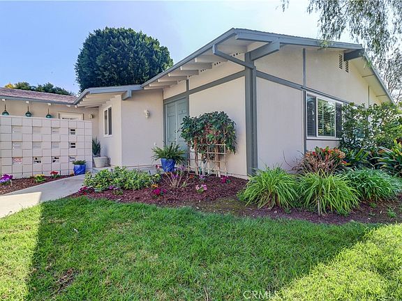 VALENCIA model with NO STEPS! Nobody above or below. Close to carport or park on the street (Sevilla) in front of 597 building. Fabulous remodel. Added large closet near entrance. Vaulted living room ceiling, double pane vinyl windows, smooth ceilings, crown molding, baseboard molding & wood-look flooring throughout. Kitchen features skylight, granite countertops, and S/S appliances. Great location! One house away from Aliso Creek walk & 2 blocks to Performing Arts Center (PAC) with its more than 800-seat theater & small post office in the parking lot. Skylight in guest bathroom & solar tube in primary bathroom. Windows to the patio & atrium provide lots of interior natural light. Make this your new home! Enjoy all the amenities & life within the gates of Laguna Woods Village resort-like community. Amenities: 2 Golf Courses, 5 Clubhouses, 5 Pools, 3 Fitness Centers, Performing Arts Center (PAC), Tennis, PC & MAC labs, Wood Shop, Garden Centers, Equestrian Center, Bocce, Pickle Ball, Arts (Pottery, Glass, Lapidary, Jewelry, Painting, Sewing), 280+ Clubs (including one of the largest Bridge Clubs in US), RV parking area and so much more. Experience SoCal’s Mediterranean-like climate. Minutes to Laguna Beach & the ocean.