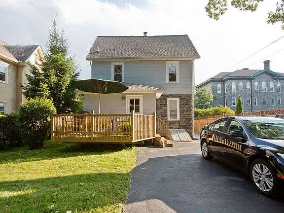 This captivating, historic district, three story colonial (approx. 2,400 sq. Ft. ) has 4/5 bedrooms, 2~ baths, wonderful architectural detail, two car detached garage (w/electric), and has been professionally remodeled from top to bottom. It features high ceilings; original pine wood floors; bright kitchen with breakfast bar, granite countertops and stainless steel appliances; living room; dining room; familyroom with corner fireplace; 3rd floor master suite, granite bath vanity tops; back deck with room to barbeque; and covered mahogany front porch. This jewel of a home is located in lower merion township within walking distance of the heart of bryn mawr and haverford, food and farm markets, bakery, train stations, parks, movie theater, library, yoga/exercise studios, restaurants, shopping and much more. Even with all this access, the home is a oasis on a quiet street. With your own expansive driveway and garage, parking is never an issue. This home has been lovingly cared for, is energy efficient, cost effective and move in ready with new high efficiency gas heater, solar panels (5. 1kw), upgraded electric (200-amp), replaced sewer line, replaced energy efficient roof, two central air conditioner units, new basement bilco door and more. The location, privacy, walk-to lifestyle.