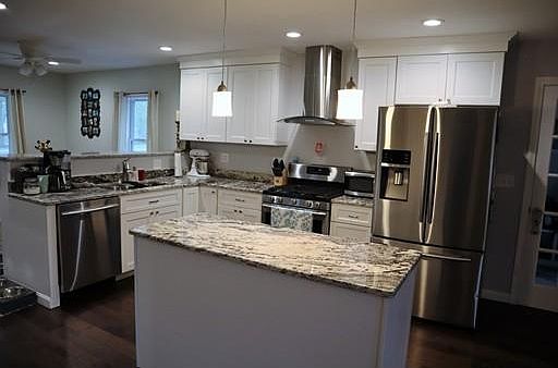 This home was completely renovated inside and out in 2015. Exterior features include brand new vinyl siding, windows, roof, front porch, deck, patio, 1 car garage with front & back garage doors, paved driveway, large fenced in backyard. Open floor plan is perfect for entertaining. Kitchen includes new white cabinets, granite counters, breakfast bar, island & stainless appliances. A formal dining room w/ slider leads out to backyard deck. 1st floor half bath includes the convenience of a laundry area w/ washer & dryer. Large mudroom features tile flooring & entries to garage, front of house, kitchen & backyard. Master bedroom includes a walk-in closet, master bathroom w/ double sinks, granite counters, plenty of cabinets & tiled shower. 2 additional bedrooms have plenty of natural light & large closets. This truly is a beautiful home with all the newest features including plumbing, electrical, a 3 zone NTI high efficiency gas boiler for heat & water. Close to everything Rts 6, 24 & 195.