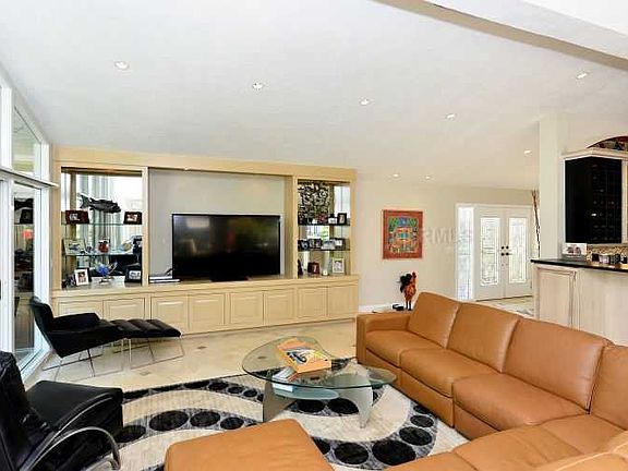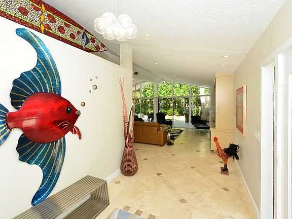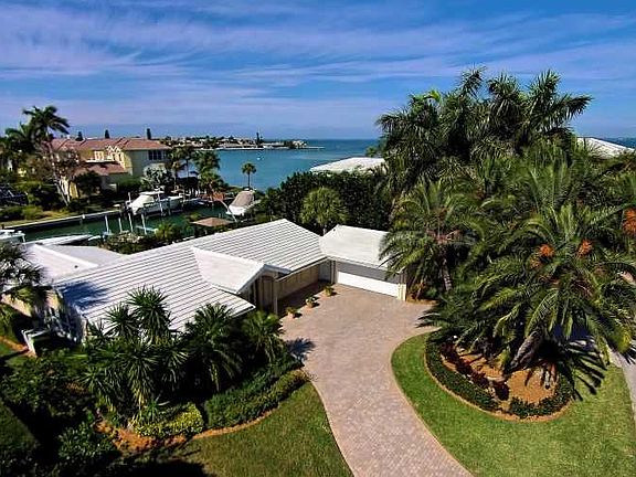 Poised on the south end of Longboat Key, this elegant home showcases gorgeous bay views and striking contemporary style. Just one home in from the open bay, beautifully updated living spaces provide the perfect setting for enjoying relaxed island living. Leaded glass doors open to the welcoming entry foyer, inviting you to discover the living/great room with soaring cathedral ceiling and exquisite travertine flooring. The kitchen was updated in 2013 with granite countertops, wood cabinetry, and appliances. Wake up to peaceful views of Sarasota Bay from your spacious master suite, with a gracefully remodeled bath and large walk-in closet for sumptuous comfort. Refresh and rejuvenate by your Pebble Tec saltwater pool as you admire the view, with a fence affording both privacy and peace of mind. Two boat lifts, of 24,000 lb. and 10,000 lb, accommodate your sailing vessels with ease, with a swift cruise through New Pass connecting you to the Gulf of Mexico. The Country Club Shores community is just minutes from St. Armands Circle, downtown Sarasota and the dazzling Gulf beaches, placing the very best of Sarasota living at your doorstep.
