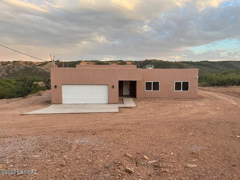 New Construction-Ready to move in! This beautiful 3 bedroom, 2 bath home has an open floor plan filled with natural lighting throughout. The home faces north with views of the surrounding mountains, perfect for relaxation. Fine upgrades can be appreciated throughout the home such as spacious bedrooms, tile floors throughout, upgraded light, & plumbing fixtures, skylights in MB, vanity desk, motion lights, dual pane windows, garage mop sink, water softener loop, and more. The home sits on .55 acres of land & offers endless possibilities to landscape. This beautiful home is minutes away from the interstate for easy traveling to Nogales/Rio Rico or Tucson.