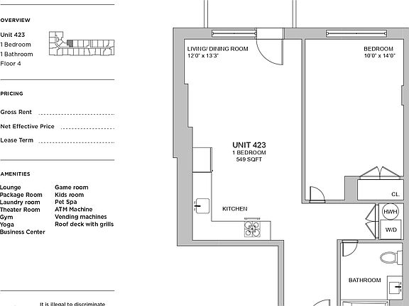 - Exterior features: Balcony, Bicycle storage, Broker Exclusive, Childrens Playroom, Live In Super, Media Room, No Fee, Package Receiving, Public Outdoor Space, Roof Rights, Roofdeck, View Type: Skyline View