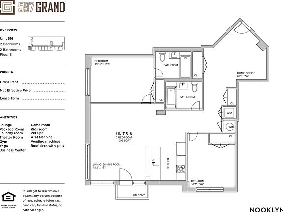597 Grand boasts stunning views, roof access, kids playroom, coworking, gym and more!