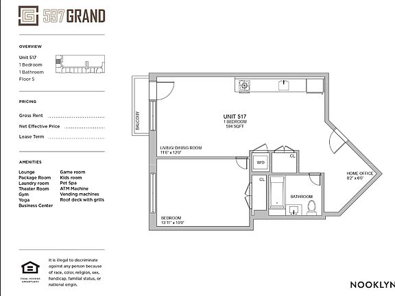Stunning 1 bedroom + home office in the heart of Williamsburg. Steps from the L + G trains, coffee, restaurants, bars and more! Unit has washer/dryer hookups, hardwood floors, central a/c, balcony and spacious bedroom that can fit a king size bed. 597 Grand boasts stunning views, roof access, kids playroom, coworking, gym and more! Please reach out for a video.