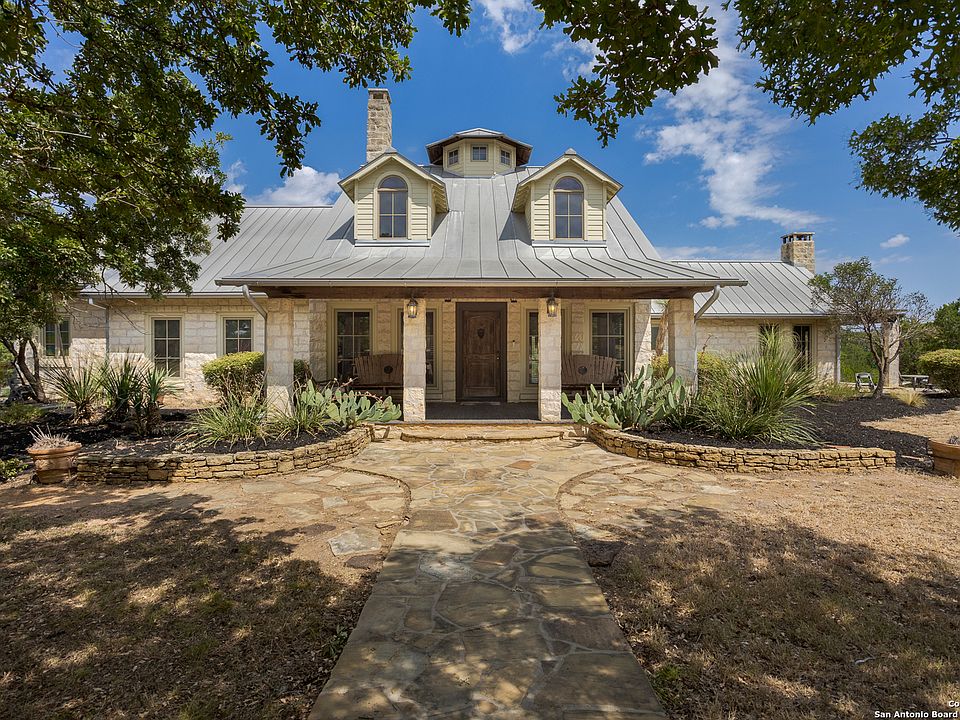 Experience the pinnacle of Hill Country living at this extraordinary 29+ acre estate, where modern luxury meets timeless Texas charm. Perfectly positioned between Boerne and Bandera, this property offers sweeping, unobstructed sunset views over Edwards Mountain, a tranquil wildlife exemption, and a rare blend of privacy and accessibility. Land & Setting Surrounded by majestic Live Oaks and a curated mix of native trees, the land provides both beauty and purpose. A 1-D-1 wildlife valuation not only delivers substantial tax savings, but also fosters a thriving habitat for Whitetail and Axis deer that roam freely at dusk. Gently rolling terrain transitions to dramatic western slopes, creating postcard-worthy evening vistas that frame the sky in fiery colors night after night. Main Residence Crafted with an uncompromising attention to detail, the 3,985 sq. ft. custom-built main home showcases soaring 30' cathedral ceilings, hand-scraped white oak floors, and Anderson E Series windows framing serene hill and creek views. Dual kitchens-each with premium appliances-create a chef's dream space, while two striking fireplaces add warmth and character. The primary suite features its own private patio for peaceful sunset moments. Guest House The 1,364 sq. ft. guest residence mirrors the same craftsmanship, with floor-to-ceiling windows, a wrap-around porch, and a soaring pine-beamed ceiling, offering guests both comfort and connection to nature. Lifestyle Amenities From the two-level resort-style pool and spa, to the expansive 30x30 climate-controlled shop with A/C and a barn now upgraded with electricity, every improvement is designed for both function and leisure. Patios and walkways of Oklahoma red flagstone meander through lush landscaping, connecting spaces for entertaining and relaxation. Location Just 10 miles from Bandera, 14 from Boerne, and 22 from Loop 1604, this estate is ideally situated for those seeking refined country living within easy reach of San Antonio's dining, shopping, and private airport access. This property is more than a home-it's a sanctuary. A place where each day begins with golden light filtering through the oaks and ends with the unrivaled spectacle of a Texas Hill Country sunset.