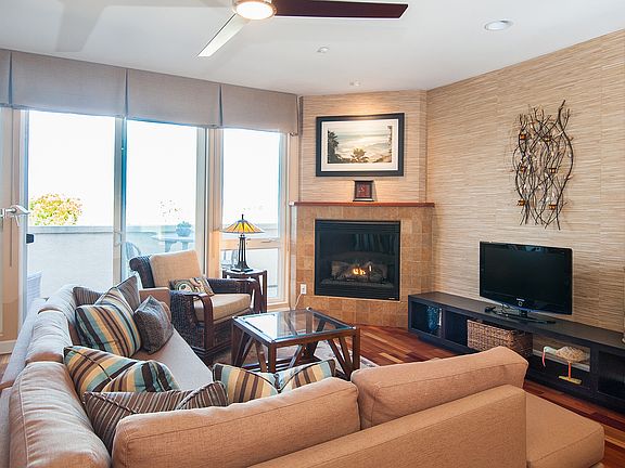 COMING SOON and OPEN House Sat and Sunday - this desirable custom SINGLE STORY with ocean view from many rooms - absolutely no stairs - top floor corner unit - with elevator access. Highly upgraded, wood floors, stainless appliances, granite counters, fireplace, air conditioning. 3rd bedroom has built -ins in closet to be an office. Can be bought furnished . Gated building with only 21 units. Common facilities are exercise room, pool, spa, conference/community room, private storage room. Don't wait, call listing agent Nic Lundborg 760.419.2043 After loading virtual tour, please switch views at the bottom left corner by chosing the home drawing. You'll be able to see the exact floor plan and walk thru each room in 3-D living color! Washer, dryer, refrig incl in VALUE RANGE PRICE $950-1.0 mil