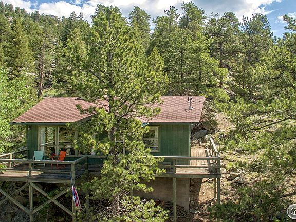 Cozy cabin in the woods on 1.79 acres is nestled in the trees and surrounded by amazing rock outcroppings that will provide endless entertainment for the explorers out there! Two bedroom / 1 full bath, kitchen with dining area, washer/dryer hook ups. Living room has walls of windows and beautiful stone fireplace. Enjoy snow capped mountain views from the deck. Close to Estes Park & RMNP and easy commute to Lyons & Longmont. This is it...your perfect mountain getaway!