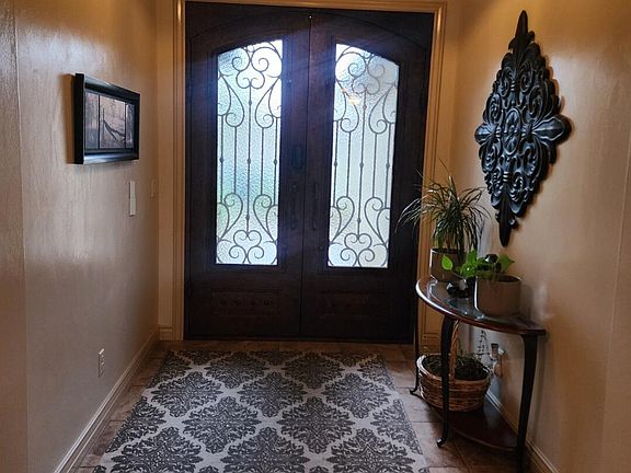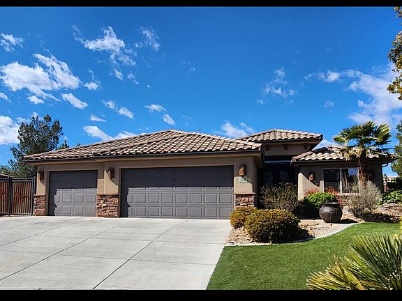 This home does not disappoint. The backyard is an oasis with a solar & gas heated saltwater pool with slide, an amazing outdoor living area (BBQ, fireplace, firepit & TV), water feature and turf grass offering a maintenance free yard that is fully fenced and gated. There is room to park a smaller RV behind the gate. This home has been very well cared for and is definitely a must see! Inside features beautiful barn doors, gas fireplace, wooden blinds, tile floors throughout and carpet in 2 of the bedrooms. Has a stucco sided shed for outdoor storage and built in shelves in the 3-car garage. Parks and walking trails directly connected to the neighborhood.