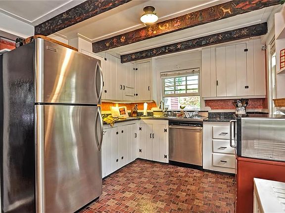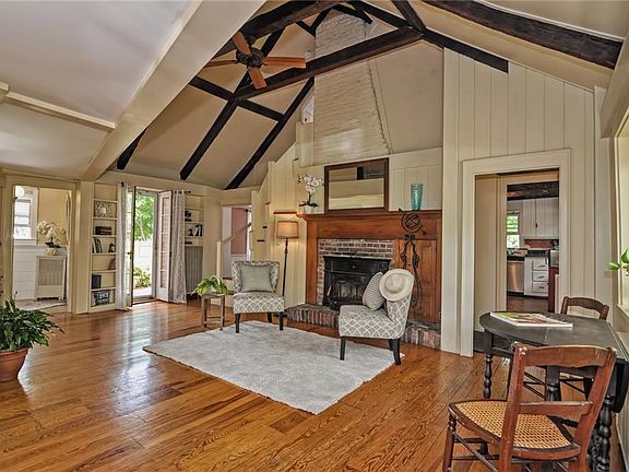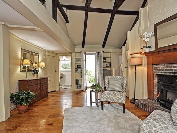 Rich in local history and craftsmanship, this home is charming, unique and exceptionally well maintained. A brilliant blend of space and function makes this home ideal for entertaining. A wonderfully cozy feeling is evoked by the 3 fireplaces, exposed beams, and the architectural angles. First floor master bedroom with 3 additional bedrooms on the second level. Separate stairs to an additional private bedroom and bathroom. Beautiful perennial gardens, vegetable gardens, small pond, and several patio areas. Cedar siding clapboard replaced within the last five years, 200 amp CB, roof has one layer and was replaced in 2008, boiler replaced in 2010. Ideal location, very convenient to major highways, train station, stores and restaurants.