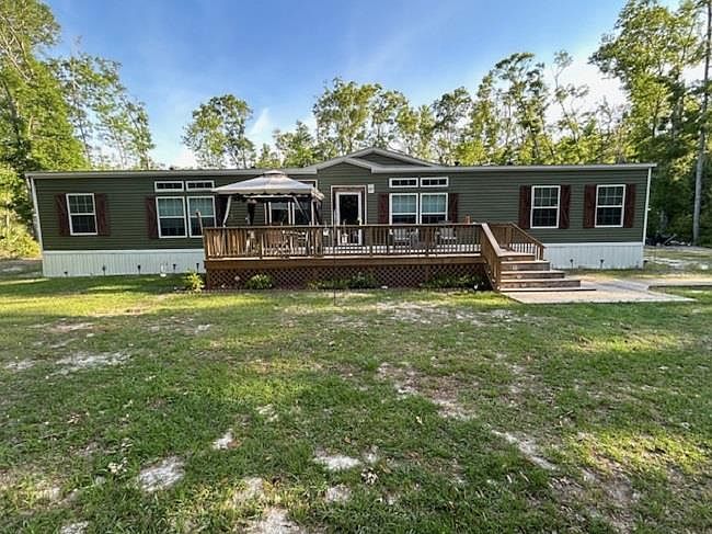 MOTIVATED! If space is what you are looking for then take a look at this country beauty! Built 2020, 4 bedroom, 2 bath DWMH that boasts 2280 heated/cooled sq. ft. nestled on a pretty, fenced/gated 2 acres. Step inside to be mesmerized! The open floor plan seamlessly connects the spacious living areas creating a very inviting atmosphere. You are naturally drawn to the amazing jaw dropping kitchen with two islands, lots & lots of cabinet and counterspace, The formal dining features a tray ceiling that lends to the feel of fine dining. Two living areas that will make everyone happy. The spacious master suite with dual walk-in closet opens to a glamorous bath with stunning effects from the tray ceiling to the bathing tub to the extra large tiled shower to the dual sinks. The 3 extra bedrooms are perfect in size and will fit twin or queen sized beds with walkin closets. Crown molding and six in. baseboard accents the home throughout with vinyl plank flooring. Imagine sitting on the open, new 12x30 wood deck enjoying morning coffee and listening to the birds sing or enjoying evening sunsets to the tune of nature. Other features include a NEW metal 20x20 workshop with concrete flooring for all of your projects. The property has a few buffering trees and native vegetation for privacy/shade between the neighbors. Make appt to view this beauty asap!!! ATTENTION $5,000 SELLER CONCESSIONS OFFERED TOWARDS BUYERS CLOSING COSTS OR TO HELP BUY DOWN THEIR RATE!!!!