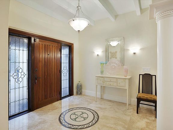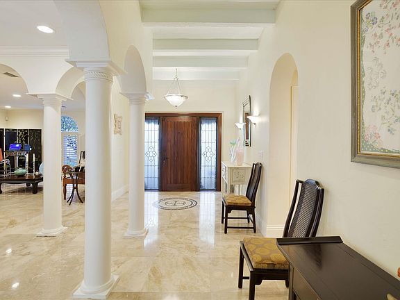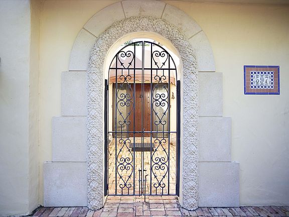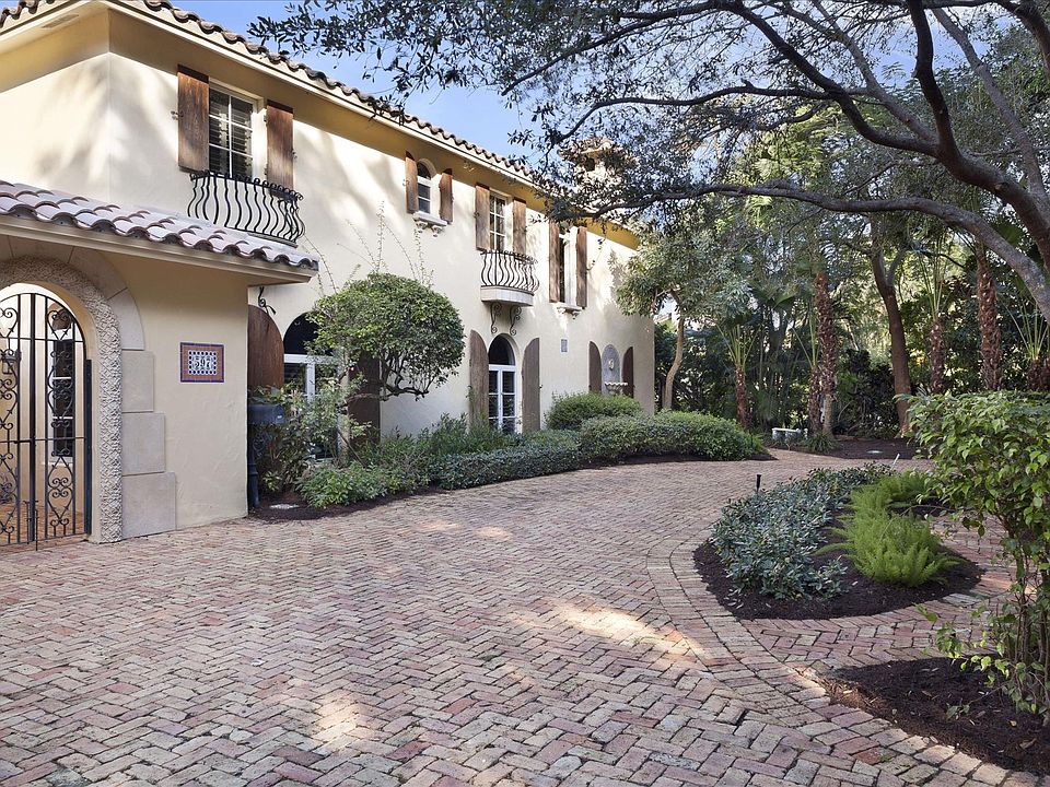 Old Floresta EstateBoca Raton, FloridaLocationCardinal Avenue, Boca Raton, Florida. Steeped in yesteryear's charm, Old Floresta is a unique historic neighborhood established in the 1920's by celebrated society architect Addison Mizner, who gave Boca Raton its signature Spanish Mediterranean style. Today, this sought-after enclave preserves a lush Old Florida setting in the heart of Boca Raton, minutes from the landmark Boca Raton Resort, Mizner Park's world-class shopping and dining, and the beach.PropertyDesigned around a charming walled courtyard with fountained pool and spa, this fully renovated Spanish Colonial resides in a tropical oasis where Chicago brick walkways meander through the gardens.ResidenceEntered through a gracious gated courtyard, this beautiful residence features completely reconstructed interiors, impact-rated windows and exterior glass doors, a new barrel tile roof, pecky cypress shutters, cast stone exterior columns, and ornamental ironwork. Five bedrooms, four and a-half baths, and a two-bay garage are provided in the total of 5,754± square feet. Interior finishes include marble and hardwood floors, mahogany doors, and architectural moldings. A medallion-inlaid marble floor accents the foyer, flowing through columned entries into the open living room and dining room, leading out to the pool courtyard. Connecting through a butler's pantry, the gourmet kitchen offers granite counters. French doors lead to the courtyard from the open breakfast area and two-story family room with cast stone fireplace and media/storage cabinetry. Off this space are a private study and bedroom suite. Opening to the pool courtyard from its own wing, the luxurious master suite features two walk-in closets and a marble bath with jetted tub, walk-in shower, and separate water closet. Three bedrooms with two baths are upstairs. Two of these bedrooms open to a sun deck above the pool.