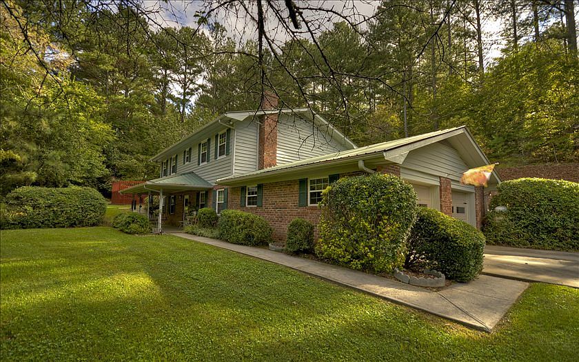 Classic character & charm... Spacious yet cozy 4Br/3Ba brick home is timeless....immaculate condition & efficient layout w open living/kitchen/dining area w/ roomy kitchen, nearly new appliances & plentiful storage, master suite w/ private bath & walk in closet. Spacious guest room on main with hall bath, Lg laundry/mudroom just off oversize double garage, full finished walkout terrace level features oversize den with brick fireplace & gas logs, 2 guest rooms & full bath, storage galore, patio overlooks lush green yard w mature hardwoods. Gentle & generous acreage with storybook setting & easy access off scenic paved road. Nearly "no-steps" entry & large pool with oversized deck. Priced to sell!!!!