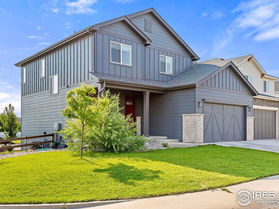 Prepare to fall head over heels for 597 Red Jewel Dr! Nestled in the highly sought-after Greenspire at Windsor Lake neighborhood this exquisite masterpiece has been stylishly crafted with thoughtful touches and luxurious finishes. You'll enjoy an open concept floor plan and high-end finishes throughout the entire house such as upgraded white shaker cabinets and whole house soft close doors and drawers. The gourmet kitchen is a chef's delight with elegant quartz countertops, upgraded gas range, custom range hood, stainless steel appliances, a pantry and extended counter space. Upstairs you will find the owners suite featuring vaulted ceilings, a 5-piece luxury bath with a frameless glass shower door, custom tile surround, a separate soaker bathtub for unwinding, and the convenience of separate, dual vanities. The finished daylight basement has 9ft ceilings, a rec room, bedroom and full bath that make multi-generational living a breeze. (There is also an option to purchase this property fully furnished.) Setting itself apart from traditional paired homes, this property maintains complete privacy by sharing no walls with neighbors, only being adjoined by a garage wall. Situated in the heart of Windsor, residents will enjoy easy access to local amenities, schools, parks, and recreational activities. Windsor Lake is minutes away and features a swim beach, summer concerts, paddle boarding and a playground. *Assumable loan at 5.6% is available*
