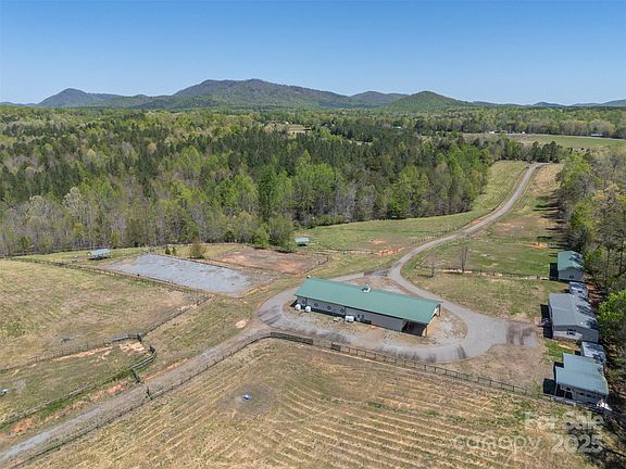 40.84 acre horse farm. Fenced and cross fenced with 7 separate pastures and auto watering in each pasture. A horse lovers dream barn that is 40x92 and an attached 40x18 shed, eight 12x14 stalls with rubber mats, pull outs for feed and water; 12 ft. center aisle; tack room/office with half bath, laundry hookup and loads of cabinets; shavings and hay storage area; wash stall with hot water available. Second barn is 60x20 with 5 stalls (2 broodmare stalls 12x20 and 3 stalls 12x12). Large (66x198) dressage arena plus an 80x130 training ring. Storage sheds, two RV or horse trailer metal sheds. 2005 DW home with 3 BR/2 BA. Nice creek on the property and an awesome mountain view from the back of the property. Property also has road frontage on Mamie Hamilton Road. This farm needs a little TLC but has loads of potential. Many wonderful building sites with great mountain views. No restrictions. Only a 30 minute drive to Tryon International Equestrian Center.