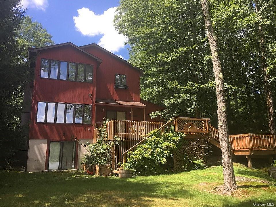 This spacious contemporary 2 story masterpiece offers immaculate lake views and is an excellent location for an Air Bnb w/ possibilities of a Mother Daughter home. Large porch gives you an opportunity to appreciate the beauty of the professionally landscaped property. Equipped w/ hot tub, you don't have to enter the home to begin to enjoy the perks of the property. Inside, an abundance of stunning glass allows for pristine illumination of the home. Stunning views of the lake are visible right from the comfort of your living room and the large stone fireplace can supply a different type of warmth as you cozy up to a roaring fire. Moving into the kitchen, enjoy lots of counter space. With 3 bedrooms, 2.5 bathrooms, a formal dining room, and family room, this house has everything you need to accommodate all of your new home wishes. With a private dock to a motorboat lake, the options are endless for outdoor activities. Start waking up to a waterfront vacation everyday!