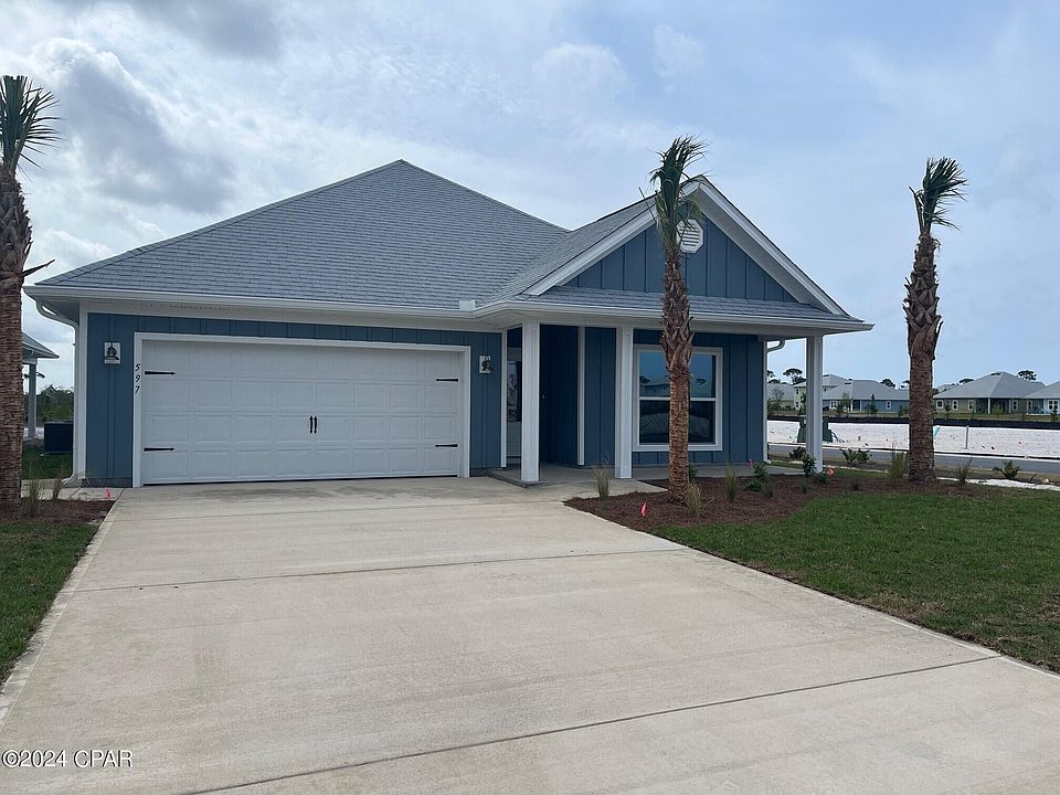 The Rhett is a 4-bedroom, 2-bath home with 1,835 square feet of living space located in WindMark Beach. Standard features of this home include beautiful granite countertops with undermount sinks in the kitchen and all bathrooms, 5 panel wood doors and engineered vinyl plank flooring throughout the entire home. There are 9-foot ceilings throughout, 11-foot double trayed ceiling in the living room, and 10-foot single trayed ceiling in the owner's suite. Stainless steel appliances included are a free-standing smooth top range, microwave, and dishwasher. This kitchen features a large walk-in pantry, disposal and water filtration system in the Kitchen. WindMark Beach is a tranquil community where one can enjoy the natural settings with boardwalks, walking paths, bike trails, and deeded beach access. WindMark Beach also offers residents numerous luxury amenities and features including a community pool, a gym, restaurants, packaging store/bar, beach equipment rentals, roving security, community fire pit, local shopping, and a versatile community center.