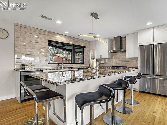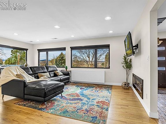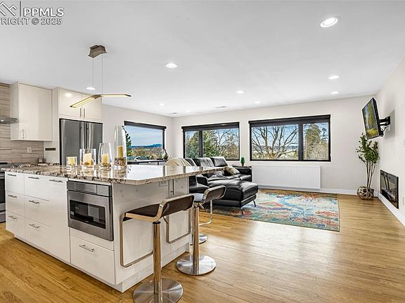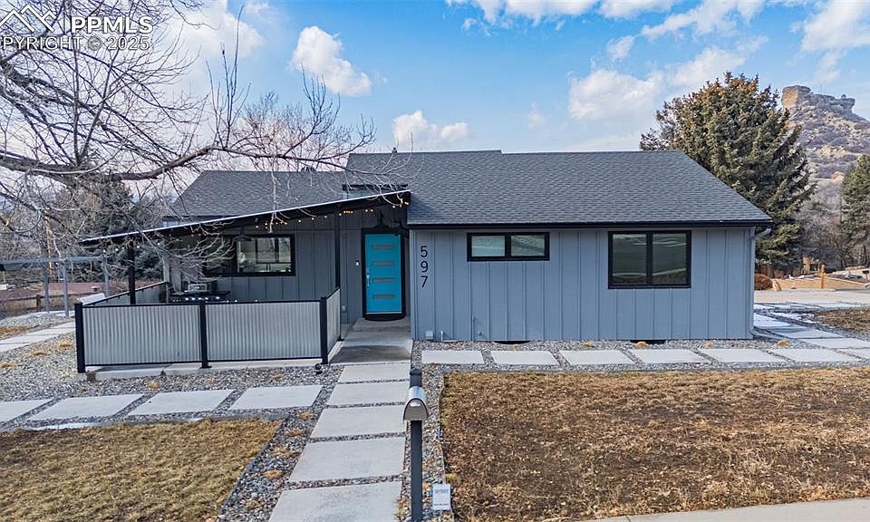 If you’re reading this, consider yourself lucky because you just stumbled across your dream mid century modern home. Just a ½-mile walk from downtown Castle Rock, you’ll enjoy top-tier dining, parks, and golf courses. Situated on a ¼-acre lot, this home features breathtaking mountain views, direct sights of the iconic Rock and Star, and front-row seats to fireworks and festivals. A massive covered front patio and a professionally designed xeriscape backyard, complete with an 8-foot gas fire pit, a custom pergola, and a concrete slab pre-wired for electricity all await you on this expansive downtown lot. Inside, luxurious hardwood floors flow through an open floor plan with soaring ceilings, massive double-pane vinyl windows, and an elegant electric fireplace. The kitchen stuns with textured granite countertops, sleek soft-close cabinetry, high-end stainless steel appliances, an electric range, and a striking tile backsplash extending to the ceiling. A six-person island and a beverage cooler complete this pristine space. The main-level master offers dimmable lights and blackout curtains, two features found consistently throughout the home. A custom walk-in closet, and a spa-like bath with heated floors, a floating double vanity, and a tiled walk-in shower with dual waterfall heads finish this private suite. Another bedroom, a full bath, and an oversized mudroom/laundry room provide additional main level convenience. Did you know this basement serves as an ADU? The lower level has a separate entrance from the outdoors and comes equipped with a second laundry area, a fully functional second kitchen, two more generously designed bedrooms, and a remodeled bathroom. Efficiency is key in this home; that’s why a tankless water heater and a dual thermostat system for personalized climate control across different zones have been installed. This is a once in a lifetime opportunity; you won’t want to miss out on the chance to call this home yours!