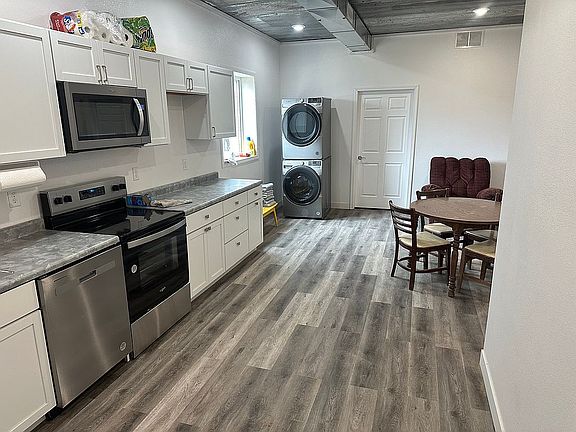 4 bedrooms, 1 bathroom setup as a bunkhouse. Fully remodeled. New electrical, spray foam insulation, HVAC. Updated everything in the building and has been built out to accommodate as many as 7-8 people comfortably. Lot is very large with some mature trees and room to build more if wanted.