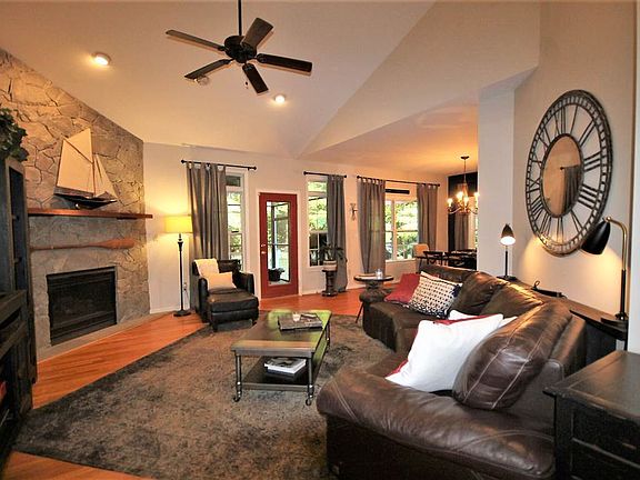 Hard to find one level living priced to sell! Large country style kitchen with pine wood floors, granite counter, large island, stainless steel appliances and eat in breakfast area. Large great room with cathedral ceilings, stone gas fireplace, formal dining, bar area and wood floors. Large master suite with attached bath, garden tub, dual vanity and tile floors. Private back yard with screened porch, deck, grilling/bar area and stone fire pit. New 10x12 storage shed, sprinkler system and colorful landscaping. Walk up attic in garage for additional storage too. Home was built with 36" doorways for wheel chair accessibility.