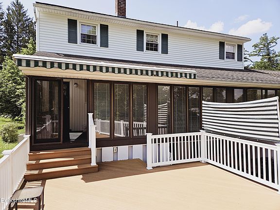 Impeccably maintained Berkshire colonial, in desirable Southeast Pittsfield location. This inviting 4 bed/2 bath home offers over 2500 sq. ft. of roomy indoor living space, along with an expansive deck and brick patio for outdoor entertaining. This home possesses a fully finished walkout basement, central air, heated garage, electric deck awning, substantial primary bedroom, newer gas boiler, Corian kitchen countertops, hardwood floors throughout, replacement windows, and numerous other reasons to adore this move-in ready home. This sale encompasses an additional .65 acre lot adjacent to the back of the property.