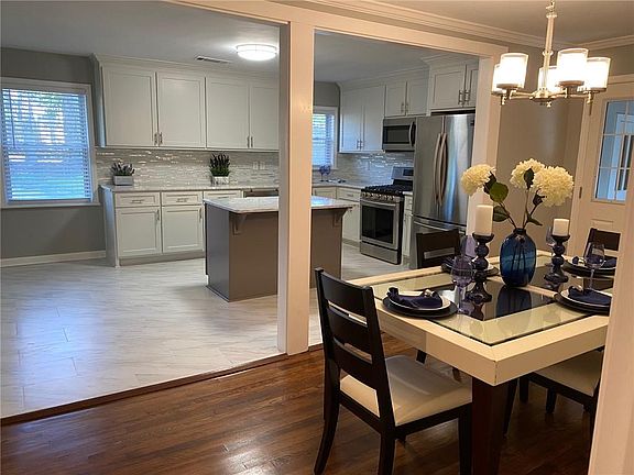 - Kitchen Features: Breakfast Bar, Eat-in Kitchen, View to Family Room, Stone Counters, Kitchen Island, Cabinets White