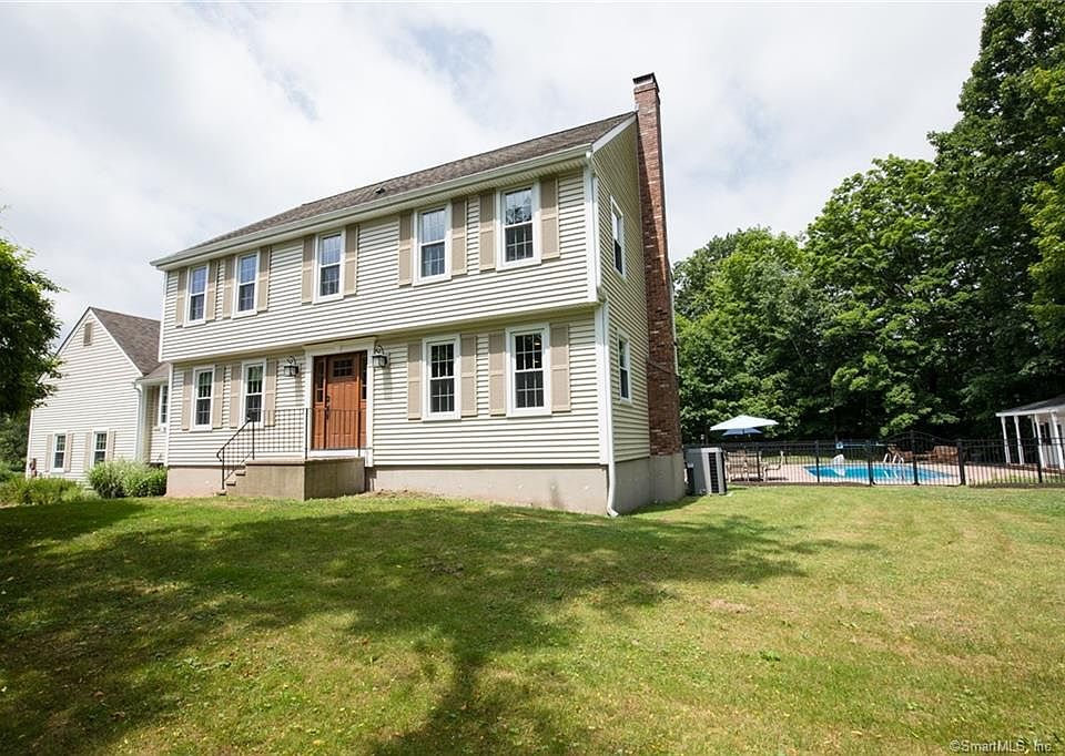Welcome to 597 Woodhouse Avenue! Set on just over 2 acres, this colonial has 2442 sq ft plus additional square footage in the finished basement, an updated kitchen, 4 bedrooms, 2 full bathrooms, 2 half bathrooms, 2 fireplaces, a 2-car garage, central air, AND an in-ground saltwater pool! As you enter the home from the garage you’re greeted with a family room with cathedral ceilings & beautiful hardwood floors that are throughout the entire main level. The family room has a wood burning fireplace & slider doors that lead you outside to the deck. The family room is open to your dream kitchen that has been tastefully updated, complete with an oversized island, double ovens, granite countertops, stainless steel appliances, farmhouse sink & tile backsplash. The formal dining room is off the kitchen & perfect for hosting. The living room is spacious & spans from the front to back of the house and has a pellet stove. To complete this main level there is a combo half bathroom/laundry room. Upstairs you will find your large master suite with attached bathroom, 3 additional bedrooms and the second full bathroom. All 4 bedrooms have ceiling fans. The basement is fully finished with lots of additional living space to use how you please. There is large area that can be used as extra living space & separate spaces that would be perfect for an office or workout area. Outside is a perfect oasis to entertain with your gorgeous saltwater pool with new liner and stamped concrete patio surround.