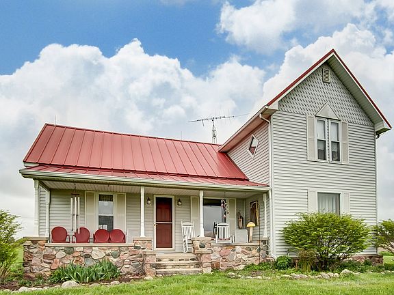 Remarkable uniqueness abounds in this traditional two story country home with all finely finished cherry wood walls and ceilings. Vintage trim is featured throughout along with built-in storage. The brick floor in the basement entertainment area is phenomenal. This historic home has been re-set on a modern poured concrete basement and finished in split fieldstone for an original look. Three bedrooms and two baths plus finished basement. Open kitchen adjoins porch style breakfast nook with stone floor. Geothermal heat and extra insulation makes for affordable utilities. Red metal roof adds character. Large garden area with raised beds, 24 x 34 barn with loft, circular drive. Take extra time to view this home to absorb all the woodworking and workmanship that makes this home so unique.