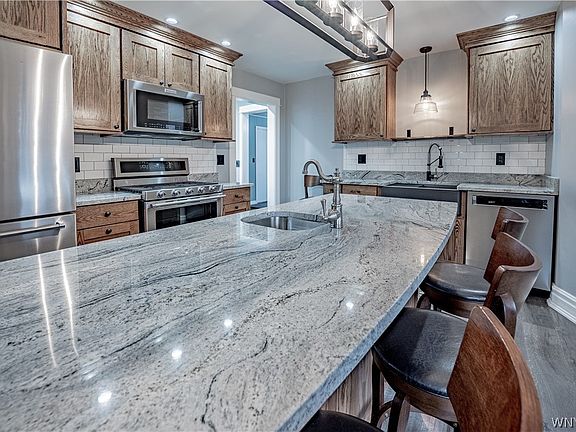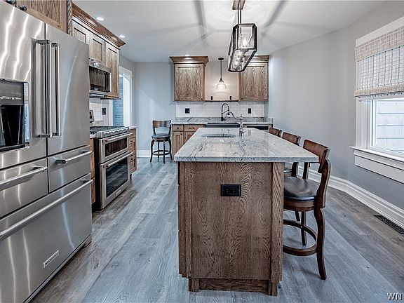 Don't let the snow stop you from looking at this gorgeous 3 BR 2 BATH Colonial perched along 18 mile Creek in Newfane. Updates are plentiful! The photos speak for themselves! New custom kitchen w/new Kitchen Aid appliances, granite countertops, oversized farm style sink & custom cabinetry manufactured locally at Red Leaf Milling. Also, formal DR, Spacious LR w/freestanding gas stove, Family Room can have many uses or convert to an in law suite or 4th bedroom. 2nd floor w/ 3BR & full bath. Full attic partially finished offers more for your money. Updates include new roof 2022, new kitchen & flooring 2020 & many new windows too! Also 2 car attached garage, 2 sheds, fully fenced yard, gazebo, firepit & a scenic view from the rear deck. 2023-02-02