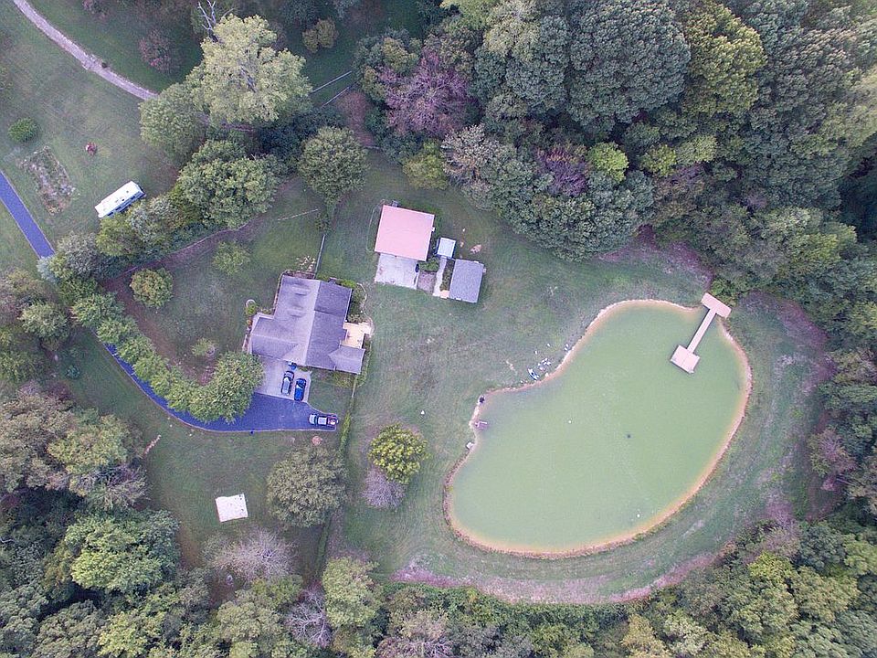 The home is a classic ranch sitting on 4.3 acres. It has 3 bedrooms and 2 full bathrooms. The living area is an open layout with a large living room that connects to the dining area and flows into the kitchen. There is a four-season sunroom overlooking the large back yard and pond. Off of the sunroom is an attached deck. The front porch is covered with a porch swing. There is an attached 2 car garage. Privacy abounds! The home is about 500 feet off of the road with a stand of trees in between. The home was custom built in 1998 and is very well constructed. It is brick on 4 sides with vinyl siding on the sunroom. There is natural wood throughout for a classic look. It has white oak hardwood flooring save for the bathrooms, the sunroom, and the laundry room, which are tile. The deck was resurfaced in 2019. The house roof was fully replaced in September, 2019 with 30-year shingles. The HVAC system was replaced in 2015 and has a 10 year, transferrable warranty. In addition to the main house, there are three other buildings on the property: A detached metal garage, an office building, and a garden shed. The 390 square foot office is fully conditioned and ready to go, complete with closet and bathroom. If not used as an office, it would make a perfect game room (plenty of room for a pool or ping pong table). The 850 square foot detached garage has two bays with doors coupled with a standard door. One half is equipped as a workshop. The other half (350 square feet) has been enclosed and conditioned for use as an art studio and school room. Without much work, it would make a perfect man cave or home theater, dark and quiet! If you wanted to reclaim the garage bay, disassembly would be straightforward. The entire property is wired with Ethernet, making either wired or wireless coverage a breeze. Additionally, the house is fully wired for cable or satellite TV in every room. There are in-ceiling speakers throughout for whole-house audio. The living room has a 92" drop-down projection screen that is flush with the ceiling when retracted. There are 5 security cameras throughout the property and a SimpliSafe wireless alarm system installed. You can choose whether or not to have it monitored. Bring your dogs! The entire backyard is fenced. This is roughly 75% of the property. The back of the property borders a small creek with a fully wooded lot beyond it. The two sides border a horse pasture and a hay pasture. There is a 1/2 acre stocked pond in the backyard. It has a 32' pier leading to a 200 square foot dock. It is fed by well and rain water, clean and perfect for swimming! It is stocked with minnows, bluegill, and channel catfish, perfect for fishing! It also has an assortment of ducks and geese, perfect for fresh eggs! ?Finally, if that weren't enough, there is a treehouse. And this isn't some deck on stilts built around a tree. This is a real treehouse, in a tree! 11' up in an oak tree, to be exact. It's currently open-air (and roofed), but it's constructed with standard door and window openings should you desire to fully enclose it. Don't read anything into the Zestimate. Zillow has struggled for years to understand the two additional buildings as well as the full size of the property. Ever since Zestimates became a thing, it has been inaccurate. Buyer's agents welcome!