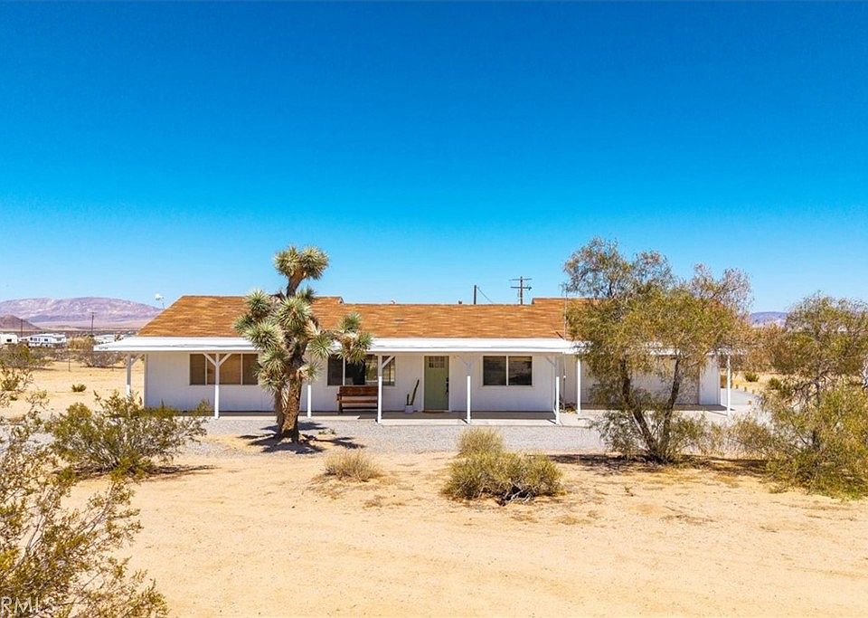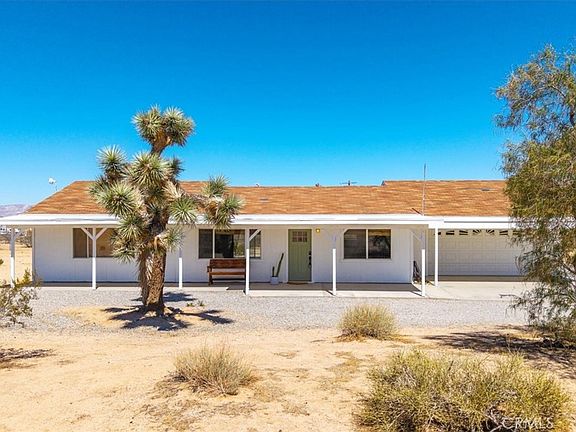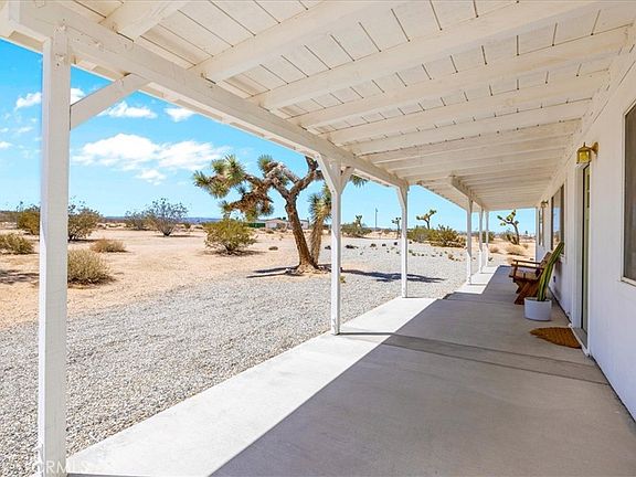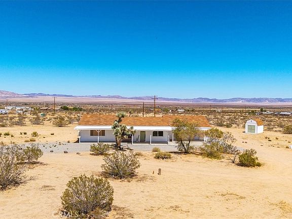 Tucked away in the peaceful expanse of the Mojave, Moonstone Mesa is a fully remodeled, fully furnished desert gem offering a rare blend of privacy, modern comfort, and iconic High Desert beauty. This stunning 2-bedroom, 2-bathroom home is situated on just over 2 acres of fully fenced land, directly adjacent to more than 100 acres of untouched Bureau of Land Management (BLM) land, ensuring uninterrupted views, total seclusion, and a direct connection to the raw beauty of the surrounding landscape. Thoughtfully redesigned from the inside out, the home features a remodeled kitchen with warm custom woodblock countertops with a clean, minimalist aesthetic that complements the desert surroundings. Both bathrooms have been tastefully updated with stylish, modern finishes, and the freshly painted eaves reflect the home’s excellent maintenance and turnkey condition. Step outside and the magic continues. A custom-built patio cover offers shade and comfort for outdoor lounging, while the spa provides a relaxing place to soak under the stars. A custom-built shed expands your options—perfect for a creative studio, extra sleeping space, or a private retreat. Enjoy sweeping mountain views by day and some of the clearest night skies in the region, ideal for stargazing or simply unwinding by a fire pit. The property also includes a spacious attached two-car garage along with curated desert-inspired decor included in the sale—making this a true turnkey opportunity, whether you're seeking a primary residence, vacation home, or income-generating investment. Currently operating as a successful short-term vacation rental in the High Desert, Moonstone Mesa has a proven track record and outstanding guest reviews. Its strategic location—just minutes from Joshua Tree, Joshua Tree National Park, Pioneertown, Yucca Valley, and a short scenic drive to Palm Springs—makes it both a sought-after rental and a peaceful private sanctuary. Whether you're drawn to the tranquility of desert living or the potential of a well-established Airbnb, Moonstone Mesa offers a rare opportunity to own a piece of the High Desert dream—fully furnished, beautifully remodeled, and ready for your next adventure.