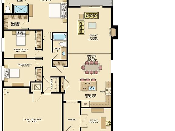 - Pantry, Great Room, Suite, Walk in Closet, Island, Kitchen/Dining Room Combo, Den