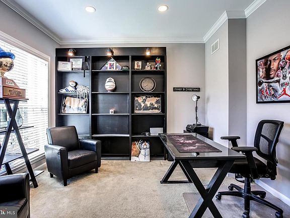 Schedule an appointment to view your dream home today! This lovely meticulously maintained three-level single-family home includes 5 spacious bedrooms & 3.5 baths, and an endless list of custom designs and luxurious high-end upgrades throughout! When you arrive, you are welcomed into a two-story foyer with a stunning cable rail staircase that offers a sleek, modern look. The barn door to the left opens up to an office perfect for today's work-from-home lifestyle. The open and bright main floor provides many options for living and entertaining. This superior Chef's gourmet kitchen includes granite countertops, an island breakfast bar with plenty of seating, in addition to premium stainless steel appliances, a wine fridge, and a separate kitchen dining area with a chandelier and views of the beautifully hardscaped backyard. The patio doors in the back of the home are upgraded and replaced with Pella doors offering unmatched security. When you open your Pella doors, you enter your private oasis onto your great deck and step down onto your paved patio. Don't worry, you still have plenty of green spaces in your yard which is fully fenced for privacy. This home has recessed lighting throughout, so you will never be in the dark. There is also a separate dining room with chair and crown molding, a living room with crown molding (which can be utilized as a flex space), and a family room area with a gas fireplace.The front yard offers masterful landscaping and a spacious two-car garage with additional space to park on the driveway.When you walk up the grand staircase, your eyes draw towards the spacious primary bedroom featuring two massive walk-in closets with built-ins and upgraded light fixtures. The custom en suite is simply breathtaking with a large freestanding soaking tub and separate frameless shower with high-end tile work, built-in niche, and multiple jets streaming showerheads. In addition to the primary bedroom, there are three more spacious bedrooms on the upper level with an actual full-size laundry room and an additional full bath with dual sinks.When you make your way down to the basement, you walk into an open rec room area with endless possibilities. There is a huge full bath with a frameless shower and a kitchenette where you have an abundance of cabinet and storage space along with a full-size fridge. There is a den in the basement as well as another bedroom. Nestled away in the corner of the basement is a special treat...it is your movie theater room with custom lighting and dimming! This lovely community is conveniently located near Route 1, I95, 695, 295, 895, and minutes away from BWI Airport, the Amtrak, and the MARC train. Costco, Target, and Trader Joe's are all a short drive away! This luxurious home listed for only $735,000 could be yours! You will not find another home with the level of upgrades and attention to detail this home boasts anywhere! This home is available for viewing by appointment only.