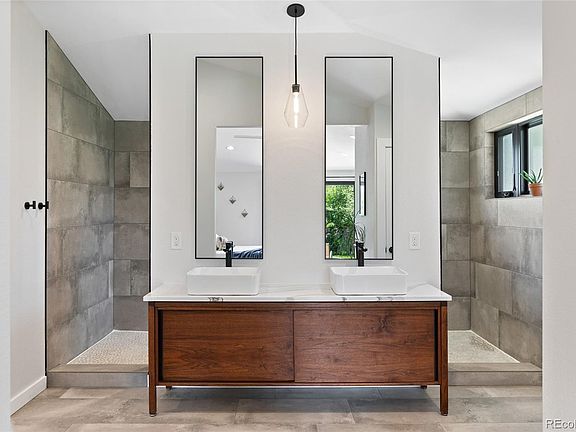 Welcome to your opportunity to own a one-of-a-kind mid-century modern home that was sensationally remodeled from the exterior walls in! Bright,open floorplan with expansive windows that flood the home with light and brings the outside in! Nestled on .44 acre lot in Aberdeen Village-one of Littleton’s most desirable neighborhoods secluded by mature landscaping. Entertaining is a pleasure as the outdoors flow in through the large sliding glass door onto the enormous covered rear patio. The chef’s kitchen with beautifully designed concrete island with waterfall edge and quarts countertop surround, engineered white oak-wide plank flooring, high end GE SS appliances, custom cabinetry, dramatic light fixtures, gas cooktop and island microwave are sure to impress all who enter. The main floor primary suite includes sliding doors to the outside and a resort-style bathroom with dual vanity,enormous walkthrough shower with double shower heads, a large walk-in closet with laundry all on top of heated radiant tiled floor! Enjoy piece of mind knowing the full remodel was primarily done from 2020-2021 by the primary owner (not investor) where the windows were installed with Anderson 100 series with Fibrex material including egress windows in all basement bedrooms & family room,new appliances, all new plumbing throughout,all new electrical wiring with smart switches, new water heater, furnace & AC with NEST thermostat, attic fan, radon mitigation, 13 zone smart irrigation system that also serves the garden bed, new gutters…the list goes on! Beyond the home, you will love the neighborhood which has top rated schools, is adjacent to Ketring Lake, Downtown Littleton, Cherry Cricket and Littleton Brewery which are opening 3 blocks down and nearby Trader Joes, Whole Foods, Alamo Draft House, Littleton History Museum, Bemis Library, not to mention the miles of walk/bike paths and amazing neighbors. Room for RV No HOA.