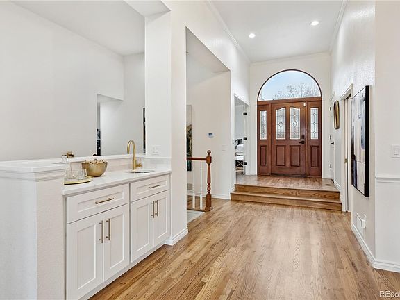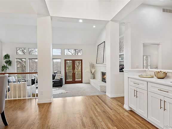 Rare opportunity to experience peaceful, luxurious living in this exquisitely remodeled custom home! Newly expanded & refinished hardwood floors seamlessly traverse the vast, sunlit foyer highlighting the central wet bar & opening into the bright window-lined living room & adjacent formal dining room! Travel to the awe-inspiring kitchen to discover it is fully equipped with state-of-the-art appliances & finishes! This ultramodern, yet classically timeless, brand new entertainer's delight boasts elegant Calacatta quartz countertops, shaker style cabinetry with soft close hinges, grounded gold hardware & chic new lighting to top it off! The primary suite offers vaulted ceilings, a cozy gas fireplace & tall french doors opening to a bountiful balcony with jaw-dropping mountain views & harmonious sounds from the Little Dry Creek River below! The amazing aesthetics continue as you enter the oversized, opulent marble-like tiled bathroom! You can't help but to admire the single piece of quartz covering the pristine pentagonal vanity, soft-close drawers & cabinets, frameless euro shower with custom tiling, a decadent freestanding bathtub & a generously-sized walk-in closet with custom built-ins & dual doors! The glamour & perfection continue downstairs with a bright, airy entertainment room personalized with built-in bookshelves, a real wood burning fireplace, a sizable wet bar including a vintage mini-fridge & large glass sliding doors leading out to the patio for an unforgettable experience of tranquility! Two bedrooms, two bathrooms & an enormous storage room complete the lower level while the main level still contains a private office, large half-bath & laundry room yet to be discovered! This exclusive community has unparalleled opportunities for the outdoor enthusiast on the High Line Canal & is also in central proximity to premier shopping at Cherry Creek, Southglenn & Park Meadows! This home fulfills even the pickiest buyers' desires! Secure it before it's too late!
